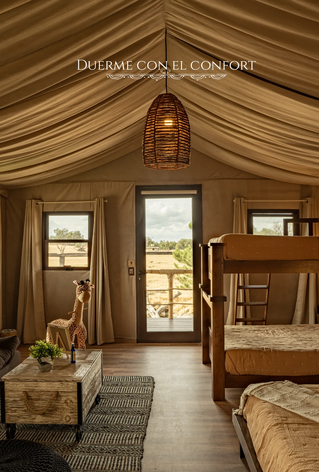 Vive la magia del safari en un glamping único. Perfecto para todas las edades: aventura, naturaleza y confort se unen para crear recuerdos inolvidables en familia, pareja o individual.